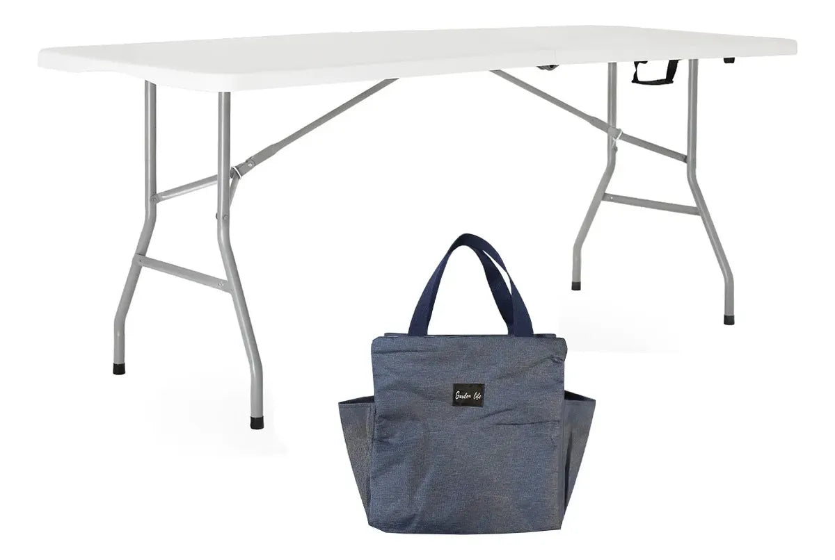 Hogar Mesa Plegable Picnic Blanca 180mts + Bolso Termico