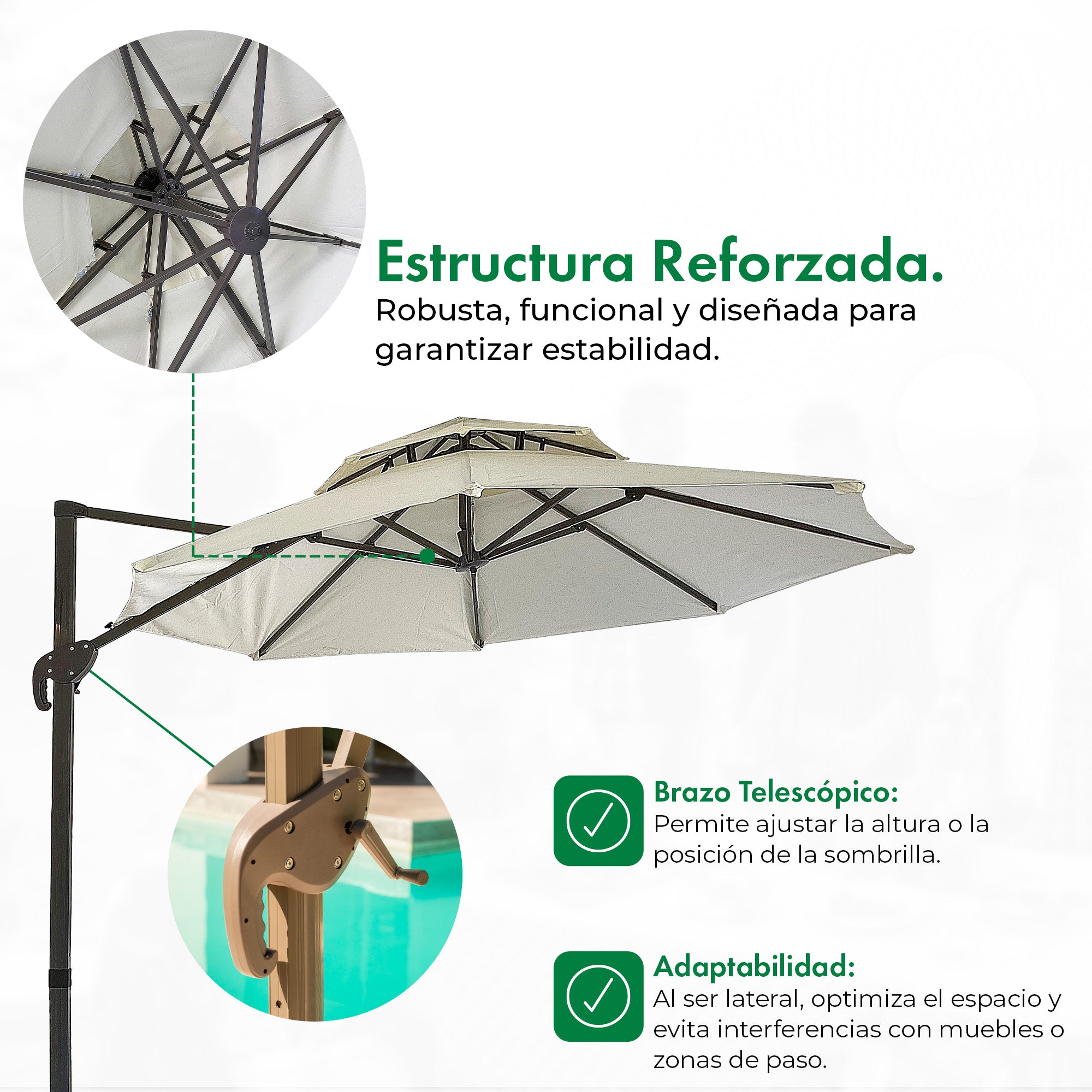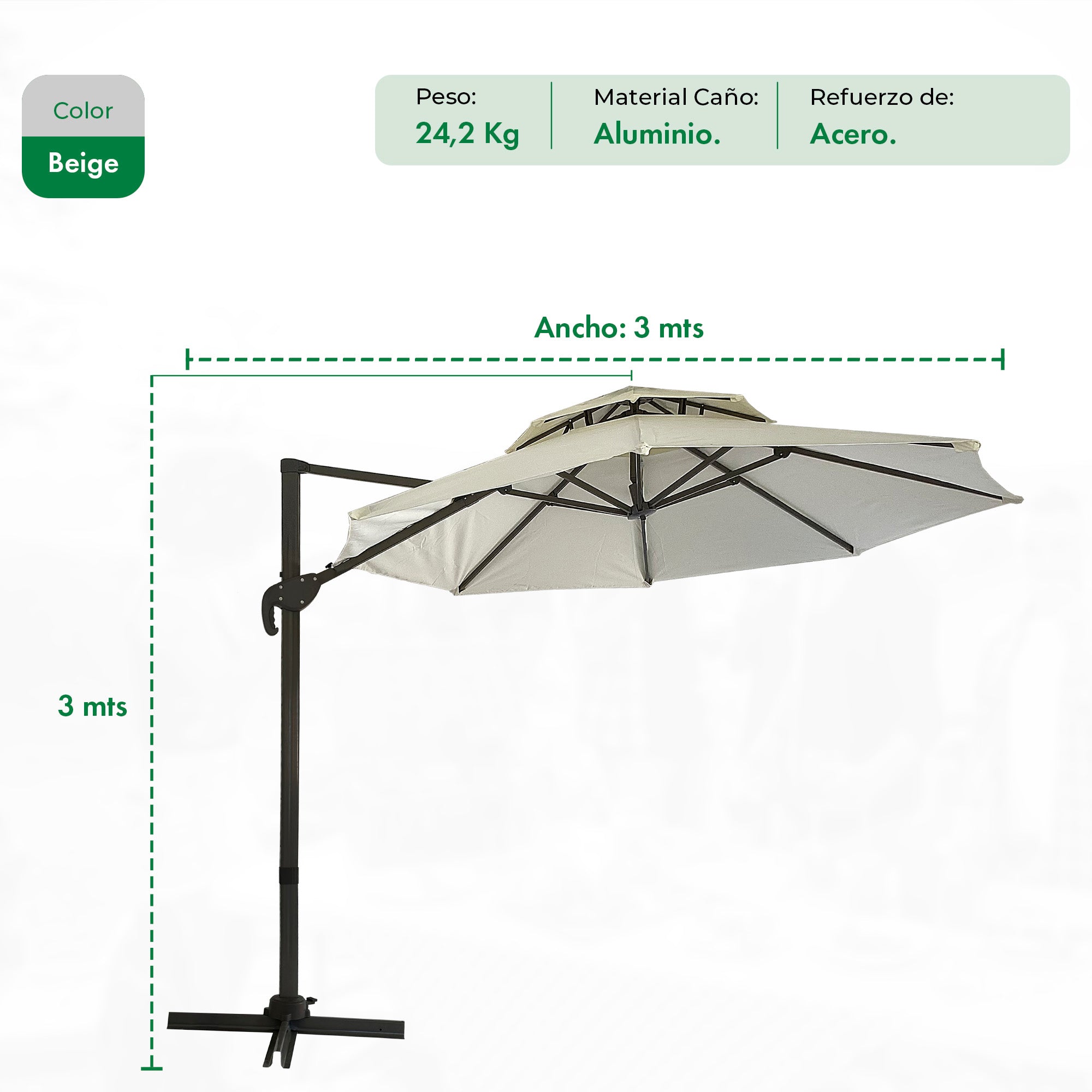 Sombrilla Lateral Beige 3 mts + Base