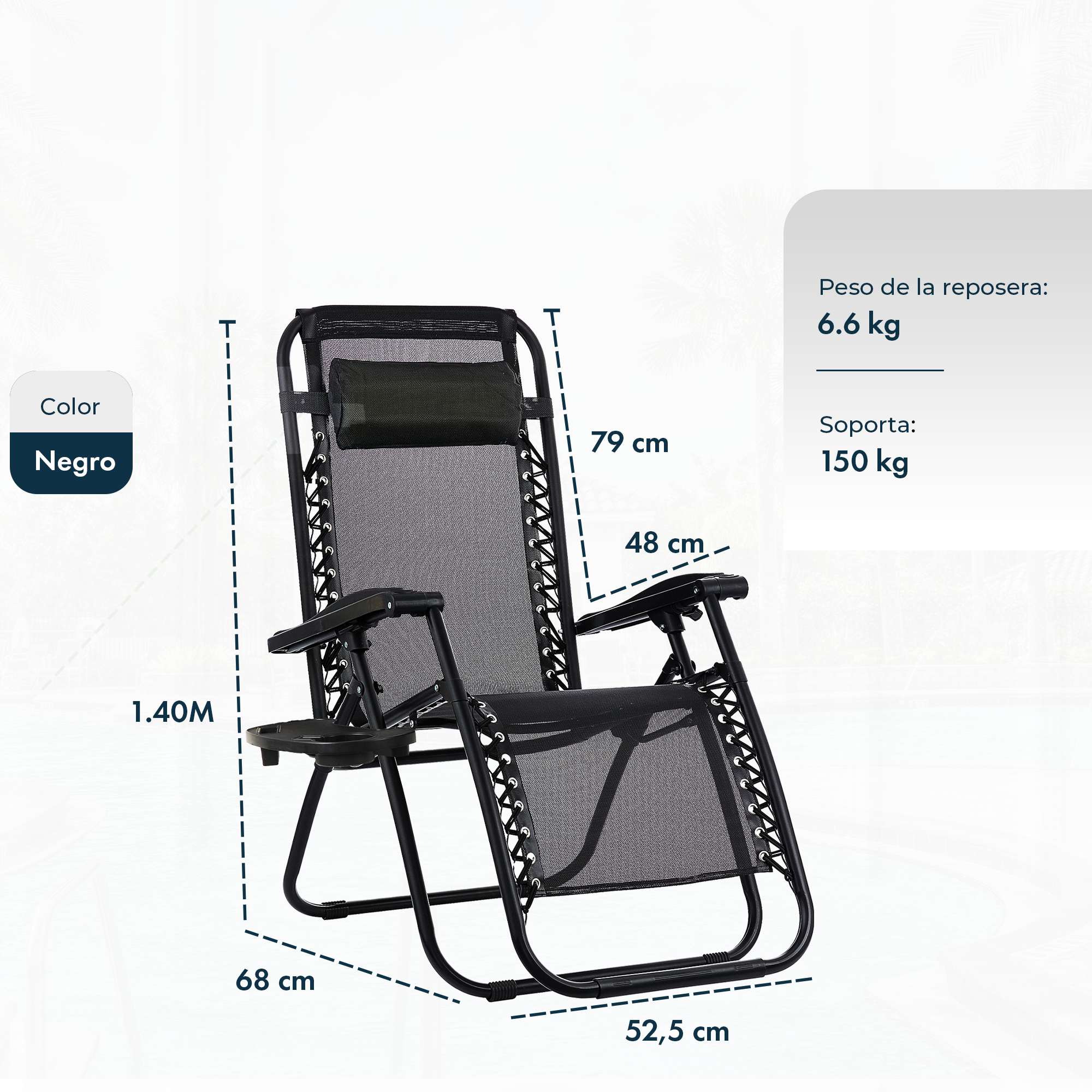 X2 Reposera Gravedad Cero C/apoya Vasos S/almohadón. Negro
